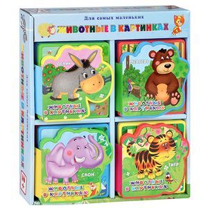 Серия "Животные в картинках" создана на основе наглядных методов обучения. Четыре мягкие книжечки со страничками из цветной полимерной пенки содержат в себе более 30 красочных узнаваемых иллюстраций, которые познакомят малышей с животными нашей планеты: домашними животными, животными нашего леса, животными жарких стран. Легкие и небольшие по формату книги ребенку будет удобно держать в руках.