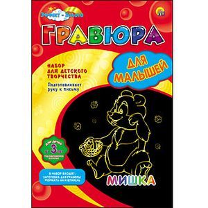 Гравюра для малышей "Мишка" с эффектом золота, А4, в конверте