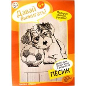 Набор Выжигания для начинающих с 2-ми досками, одна с рисунком "Пёсика", другая доска - чистая, для собственных идей. Милая собачка, облокотившаяся об футбольный мяч - рисунок, созданный на заготовке с таким расчетом, чтобы ребенок смог легко повторить его. Краска, которой нанесен рисунок, в процессе горения абсолютно безопасна для здоровья. Выжигание способствует развитию творческих способностей малыша, фантазии и внимательности. А еще работа с выжигательным прибором подготовит ребенка к освоению такого важного умения, как письмо.