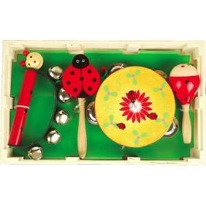 В набор входят: бубен, маракас, колокольчики и хлопушка.Набор музыкальных инструментов – отличный старт для ребенка в мир музыки.Даже самые простые музыкальные инструменты способствуют сенсорному развитию. Чем раньше ребенок начнет получать опыт взаимодействия с разнообразными музыкальными инструментами, тем быстрее и лучше будет в дальнейшем развиваться его речь.Игра на этих музыкальных инструментах способствует развитию у детей слуха, чувства ритма и музыкальной памяти, пространственного восприятия, творческого и логического мышления, речи и навыков общения. А также развивает координацию и точность движений рук.