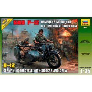 Немецкий мотоцикл концерна БМВ –Р12 –производился с 1935 по 1942 год. За этот период построили более 36000 БМВ Р-12 в военном и гражданском вариантах. Спортивный вариант Р-12 установил рекорд скорости в 279,5 км/ч, который продержался целых 14 лет! Благодаря высокой надежности при значительно более низкой, по сравнению со специальными армейскими мотоциклами BMW R-75 и KS-750 цене, BMW R-12 стал самым массовым мотоциклом в немецкой армии. На Р-12 доставляли боеприпасы и горячую пищу, эвакуировали в тыл раненых, доставляли донесения, отправлялись в разведку: трудно перечислить все армейские специальности этой машины. Кроме того, БМВ Р-12массово использовали в качестве боевого средства в специальных мотоциклетных подразделениях, где на коляску устанавливали пулемет.