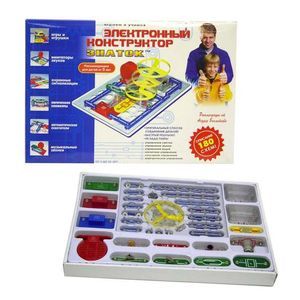 Набор электронных блоков и соединений, позволяющий конструировать электрические цепи без пайки. В иллюстрированном руководстве описано 180 схем.