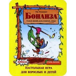 Бонанза — отличная семейная игра: добрая, лёгкая и интересная. Игра основана на общении между игроками: чем активнее игрок меняется картами:, чем больше дарит и больше принимает в дар, тем больше шансов у него стать победителем, 154 карты бобов 11 сортов; 7 карт третьего бобового поля; правила игры. Количество игроков 2-7. Время игры 45 минут. Срок службы: 10 лет.