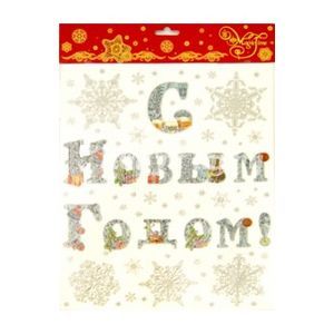 Украшение новогоднее оконное. Размер: 30 х 38 см. Материал: ПВХ-пленка. Декорировано глиттером. Упаковка: блистер. Сделано в Тайване.