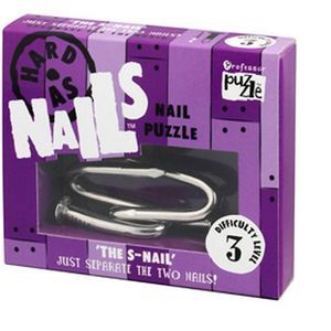 Серия Хитрые гвозди (Nail Puzzles) объединяет головоломки из гвоздей, упакованные в яркие коробочки. Просто разделите два гвоздя! Головоломка Гвоздочек (арт. 1015, The S-nail) имеет 3 уровень сложности из 5 возможных.