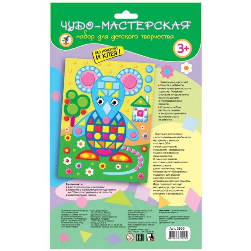 Набор для аппликации непременно привлечёт внимание юных мастеров, потому что в нём использован необычный материал - мягкий пластик ЭВА с голографическим покрытием. В результате готовая картинка получится яркой и блестящей. Малыш легко справится с работой, ведь ему не нужны ни клей, ни ножницы: объёмные детали легко приклеятся на картонную основу. Готовая картинка станет прекрасным подарком для родных и друзей, или просто украшением детской комнаты.
