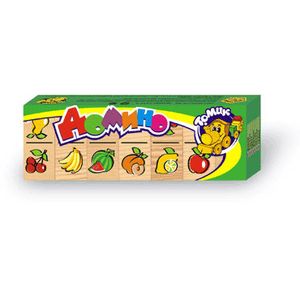 Набор состоит из 28 деревянных карточек домино с изображениями фруктов и ягод (арбуз, банан, груша, лимон, вишня, яблоко, абрикос).