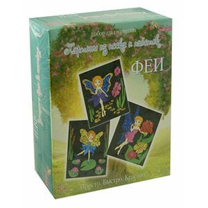 Состав набора: шаблон (3 шт.), песок (7 видов), пайетки (7 видов), клей (1 шт.), инструкция.