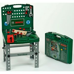 Все как у папы! Точная игрушечная копия переносного верстака BOSCH, с набором инструментов. В наборе: Сборный верстак, пила, плоскогубцы, отвертка, молоток, гаечный ключ, бруски с отверстиями, которые можно скрепить прилагаемыми болтами с шайбами. Модели KLEIN выполнены из лёгкой, но прочной пластмассы очень высокого качества и почти точно копируют оригиналы, с которых они сделаны.