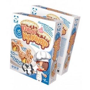 Состав набора: рецепт-инструкция, формочка, салфетка для сервировки, шапочка-берет, фартук, пластиковый нож и ложка, кулинарный мешок.