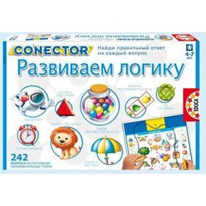 Conector имеет электронную схему, позволяющую соединять вопросы с ответами. Положение правильных ответов на всех карточках разное, так что ребенок должен руководствоваться только своими знаниями и не может пользоваться уловками.