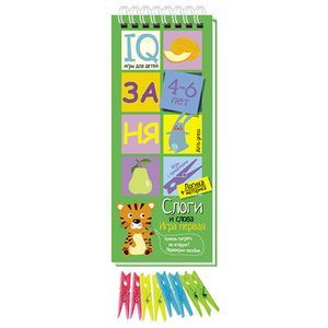 "Слоги и слова" - это игровой комплект для развития речи, мышления и моторики. Комплект представляет собой небольшой блокнот на пружине, состоящий из 30 картонных карточек и 8 разноцветных прищепок. Выполняя задания на карточках-страничках, ребёнок учится читать слоги и простые слова, строить звуковые модели слов. Прикрепляя прищепки и проходя лабиринты, он развивает моторику и координацию движений. Проверить правильность своих ответов ребёнок сможет самостоятельно, просто проводя пальчиком по лабиринтам на оборотной стороне карточек. Простота и удобство комплекта позволяют использовать его в детском саду, дома и на отдыхе. Предназначен для детей старше 4 лет.