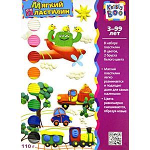 В наборе: пластилин 8 цветов, 2 бруска белого цвета.