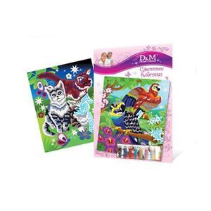Набор для творчества «Цветные блестки» включает панно-основу с рисунком и блестки 8 разных оттенков для нанесения их на трафарет. Постепенно заполняя изображение разными цветами, вы получите оригинальный аксессуар для украшения интерьера. Симпатичное панно послужит толчком для развития творческих способностей и художественного вкуса ребенка.