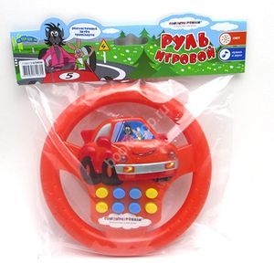Детский руль принесет яркие положительные эмоции своему маленькому владельцу! Представив себя гонщиком или водителем автобуса, малыш погрузится в мир фантазии и воображения! Руль оснащен звуковыми и световыми эффектами, которые принесут больше интерактивности в игру. Лицевая поверхность игрушки украшена изображением машинки, в которой сидят герои любимого мультфильма "Ну, погоди!" Заяц и Волк, здесь же находится 4 желтых и 4 голубых кнопочек.