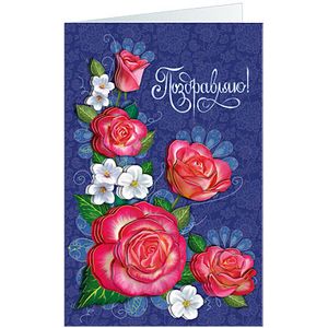 Алые бархатные розы сочетаются с белоснежными цветами яблони и нежным кружевным узором на фоне, а классическая лаконичная надпись «Поздравляю!» дополняет эту нарядную открытку для любого праздника: Юбилея, Дня 8 марта, Дня учителя и т.д. Придать объем цветам очень просто: вырезать детали и последовательно наклеить их на двусторонний объемный клеящийся материал (скотч). Сделайте объёмную открытку своими руками и она станет красивым дополнением к подарку или просто знаком внимания!