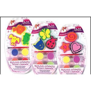 Набор штампов и красок "Весёлые штампики" (звездочка, сердечко, кружок)