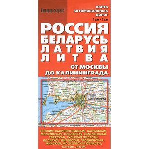 Карта автомобильных дорог "Россия. Беларусь. Латвия. Литва". От Москвы до Калининграда