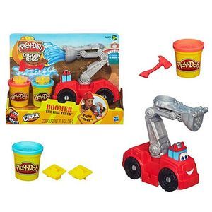 Потушить пожар или очистить строительную площадку? Бумер всегда готов. С этой потрясающей пожарной машиной создавай настоящее "пламя", а затем туши его с помощью "воды" и других пожарных аксессуаров, которые слепишь сам. Лестница выдвигается и вращается как в настоящей пожарной машине. В набор входят 2 баночки стандартного пластилина Play-Doh.