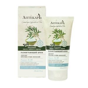 Рецепт № 19 глубоко увлажняет и питает кожу размягчает сухие мозоли и натоптыши размягчает загрубевшую кожу стоп Специальный крем против сухих мозолей обеспечивает особый уход за очень сухой, потрескавшейся, затвердевшей кожей стоп. Помогает размягчить загрубевшую кожу ступней, сухие мозоли и натоптыши, интенсивно увлажняет, предохраняет кожу от повторного ороговения. Благодаря регулярному использованию крема кожа становится более гладкой, мягкой и нежной. Мочевина (Urea) (15%) оказывает мощное увлажняющее и кератолитическое действие, интенсивно размягчает ороговевшие участки кожи. Эфирное масло чайного дерева (Melaleuca Alternifolia) — природный антисептик, который обладает эффективными противогрибковыми и ранозаживляющими свойствами, оздоравливает кожу, повышает ее тонус. Применение: наносите крем массажными движениями на огрубевшие участки кожи и мозоли 1 раз в день.