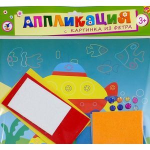 В наборе: цветная основа с рисунком, детали из фетра на самоклеящейся основе, глазки на самоклеящейся основе, стразы на самоклеящейся основе.