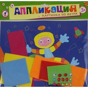 В наборе: цветная основа с рисунком, детали из фетра на самоклеящейся основе, глазки на самоклеящейся основе, стразы на самоклеящейся основе.