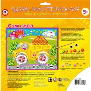 В комплекте: цветная основа с контурным рисунком и клеевым слоем, 3 листа цветной фольги, фетровые шарики трех цветов, деревянная палочка, глазки и стразы на самоклеящейся основе.