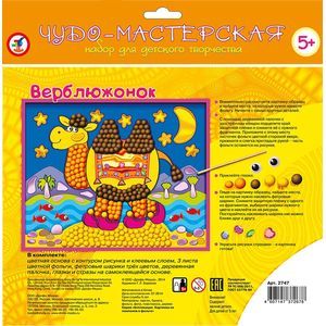 В комплекте: цветная основа с контурным рисунком и клеевым слоем, 3 листа цветной фольги, фетровые шарики трех цветов, деревянная палочка, глазки и стразы на самоклеящейся основе.