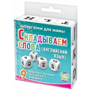 В игре 9 кубиков с буквами английского алфавита. Ребёнок может выложить практически любое слово.