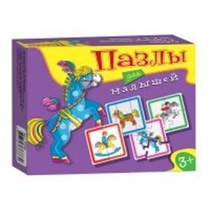 Комплекты из 6 пазловых картинок в коробке. Картинки в наборе состоят из 2,3 и 4 элементов. Игры подходят для самых маленьких детей, развивают мелкую моторику рук, координацию движения, наглядно-образное мышление, внимание, память.