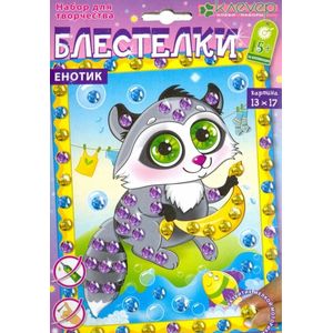 Енотик-чистюля старательно полощет бельё и вокруг разлетаются радужные мыльные пузырьки. Мини-картины серии "Блестелки" - первые шаги ребёнка старше 5 лет в освоении интересной и красочной техники мозаики. Это самый простой пример мозаики - не сплошное составление картины из мелких элементов, а декорирование её отдельных частей. Украсьте картину разноцветными искрящимися пайетками! Без клея - аккуратно и чисто