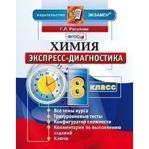 Данное пособие полностью соответствует федеральному государственному образовательному стандарту (второго поколения). Пособие содержит по три варианта тестовых заданий по всем темам курса химии для экспресс-диагностики уровня освоения школьниками программы 8-го класса. Работа с пособием поможет оперативно проверить знания учащихся и научить решению расчетных задач. Издание предназначено учителям химии, учащимся 8-х классов, родителям (ко всем тестам есть ответы).