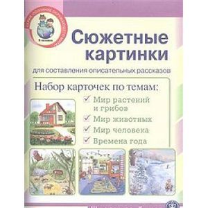 Пособие состоит из 22 сюжетных картинок по темам, охватывающим содержание познания окружающего мира: мир растений и грибов (фрукты, овощи, ягоды, грибы, цветы, деревья, лес); мир животных (домашние и дикие животные и птицы Средней полосы; животные и птицы холодных и жарких стран; насекомые, земноводные, пресмыкающиеся, рыбы); мир человека (человек и его тело, человек и его семья, планета Земля, страна, Родина, столица, город, улица и т.д., времена года). Ребенок не только описывает предметы по картинке без опоры на конкретные вопросы (или с опорой на примерные вопросы - они даны в двух вариантах), но и рассказывает, какое это время года, какие явления природы можно наблюдать, что делают люди, как ведут себя животные, что происходит с растениями и т.д., составляя таким образом связный рассказ и показывая взаимосвязь природы и человека. Обширный картинный материал может использоваться для проверки овладения детьми этой возрастной категории (6-7 лет) доступным лексическим словарем природоведческой, обществоведческой, бытовой тематики, при организации познавательной деятельности по его освоению детьми более раннего возраста или в начальной школе. Адресовано воспитателям детского сада, учителям начальной школы и иностранного языка, родителям, гувернерам. Составитель: Шестерина Н.Л.