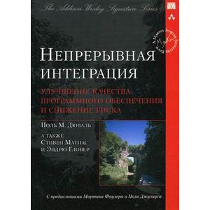 В книге "Непрерывная интеграция" (из знаменитой серии Addison-Wesley Signature Series) рассматриваются некоторые из наиболее типичных процессов разработки программного обеспечения: компиляция кода, определение данных и манипулирование ими в базе данных; осуществление проверки, просмотр кода и в конечном итоге развертывание программного обеспечения. Но главное, в ней описано, как непрерывная интеграция способна снизить риски, которые подстерегают при создании приложений. В системе непрерывной интеграции большинство этих процессов автоматизировано, и они запускаются после каждого изменения разрабатываемого программного обеспечения. В этой книге обсуждаются аспекты автоматизации непрерывной интеграции, большинство предоставляемых ей преимуществ в области повторяемых и склонных к ошибкам процессов. Ныне существует множество великолепных инструментальных средств, поддерживающих непрерывную интеграцию как автоматизированный процесс, использующий сервер CI для автоматизации действий. Тем не менее ручной подход к интеграции (при автоматизированной компиляции) вполне может хорошо сработать.