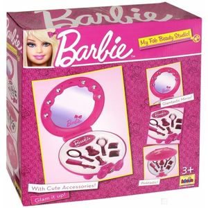 Туалетный столик Klein "Barbie" с безопасным зеркалом привлечет внимание вашей малышки и позволит ей почувствовать себя настоящей принцессой. Столик выполнен в виде студии красоты с застежкой в виде красивого банта. Зеркало украшено крупными игрушечными стразами. Внутри столика расположены восемь самых необходимых аксессуаров для маленькой модницы: щетка, расческа, зеркальце, два флакона и две заколки.