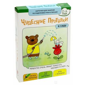 - ЛАМИНИРОВАННЫЕ КАРТОЧКИ с развивающими заданиями. Картинки рассказывают о приключениях маленького медвежонка. Крупным шрифтом написаны слова Мишутки, мелким - задание, которое нужно выполнить маркером. Ребёнок может многократно рисовать, тренируя координацию движений, умение сравнивать и размышлять.