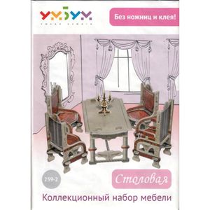 Коллекционный набор мебели "Столовая". Объемный пазл. Цвет серый
