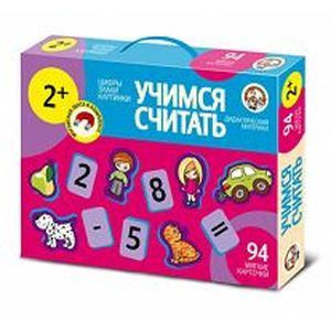 «Учимся считать» - это вспомогательный материал, рассчитанный на родителей, педагогов и воспитателей для обучения ребенка счету. Данный набор в игровой форме поможет Вашему ребенку познакомиться с цифрами, запомнить их написание, освоить математические понятия, научит считать и производить простейшие арифметические действия. Эта познавательная игра способствует развитию таких качеств, как внимание, наблюдательность, усидчивость и логическое мышление. В комплект игры входят 58 карточек с картинками и 36 карточек с изображением цифр и математических знаков. Карточки выполнены из картона и экологически чистого абсолютно безопасного для ребенка полимерного материала и полностью готовы для занятий за столом.