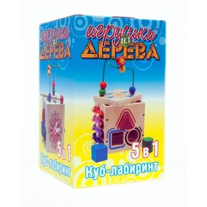 Куб-лабиринт содержит в себе несколько развивающих игрушек. Сверху игрушки проволочный лабиринт с геометрическими бусинами разных цветов и форм. Одна из граней куба переворачивается, лабиринт устанавливается на крышу куба, после окончания игры для удобства хранения и переноски. На кубе есть также сортер. Отверстия прорезаны по форме геометрических фигур, лабиринт, часы и ксилофон. Игрушка способствует развивитию логики, моторики и творческих способностей ребенка.