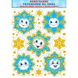 Новогодние украшения на окна. Многоразовые наклейки, видны с обеих сторон.