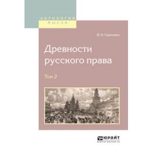 «Древности русского права» (первоначальное название «Русские юридические древности») выдающаяся работа одного из самых крупных историков России В. И. Сергеевича. В ней нарисована картина развития социально-экономических связей, юридических отношений, политической структуры русского общества, включая изменения его государственного строя. Книга входит в программы высших учебных заведений по истории отечественного государства и права в качестве дополнительной литературы. В настоящем издании публикуется в четырех томах.