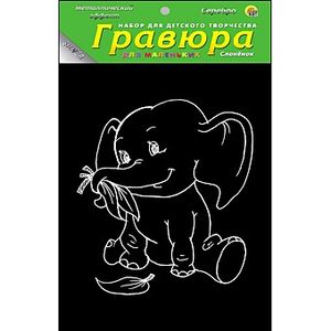 Гравюра "Слонёнок" с эффектом серебра, 13х17 см, в пакете с ручкой