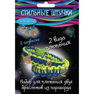 "Стильные штучки" представляет собой набор для творчества, с помощью которого девочке представится возможность сплести 2 браслета из паракорда. Очаровательные аксессуары можно будет изготовить, используя разные виды плетения, что отлично скажется на развитии творческих навыков ребенка. Готовые предметы нужно будет украсить милыми подвесками.