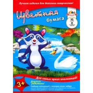 Бумага цветная "Енот", А4, 16 листов, 8 цветов