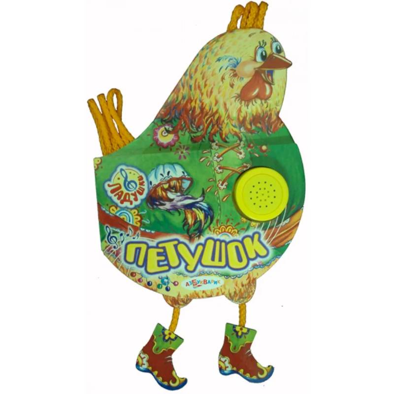 5 русских народных песенок и потешек: «Петушок» (песенка озвучена), «Сидит белка на тележке», «Водичка, водичка», «Кисонька-мурысенька», «Пошёл котик на торжок».