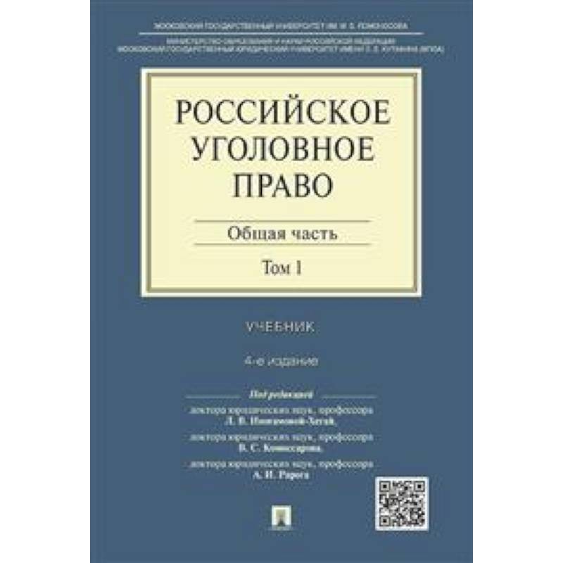 Учебник является четвертым, переработанным и дополненным изданием, подготовленным профессором кафедр уголовного права Московского государственного юридического университета имени О.Е. Кутафина и юридического факультета Московского государственного университета имени Ломоносова М.В. с учетом последних изменений и дополнений, внесенных в УК РФ. Использованы материалы опубликованной судебной практики за последние годы. Издание подготовлено по состоянию законодательства на июль 2014 г. Для студентов высших учебных заведений, слушателей курсов повышения квалификации, аспирантов, преподавателей, а также работников правоохранительных органов.