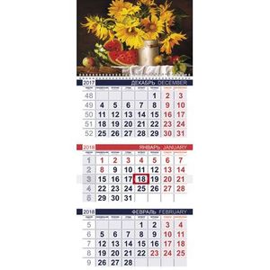 Календарь квартальный. 3 блока, Подсолнухи 2018 год