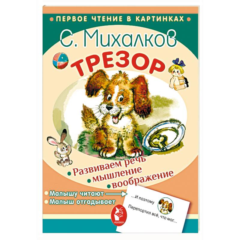 Прочитайте малышу знаменитое стихотворение С. Михалкова «Трезор» и попросите его назвать вслух те слова, которые заменены картинками.