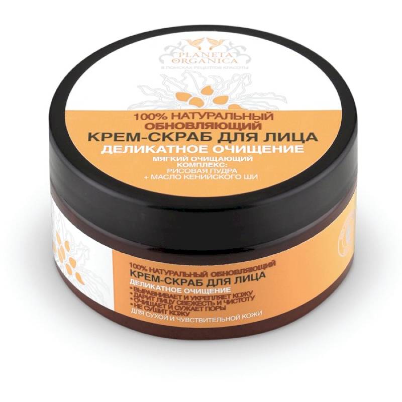 Данный крем-скраб для лица от Planeta Organica помогает выровнять кожу и укрепить ее структуру, бережно удаляет загрязнения и сужает поры кожи, обеспечивает очень деликатное отшелушивание и при этом не сушит кожу, дарит ощущение свежести и чистоты.