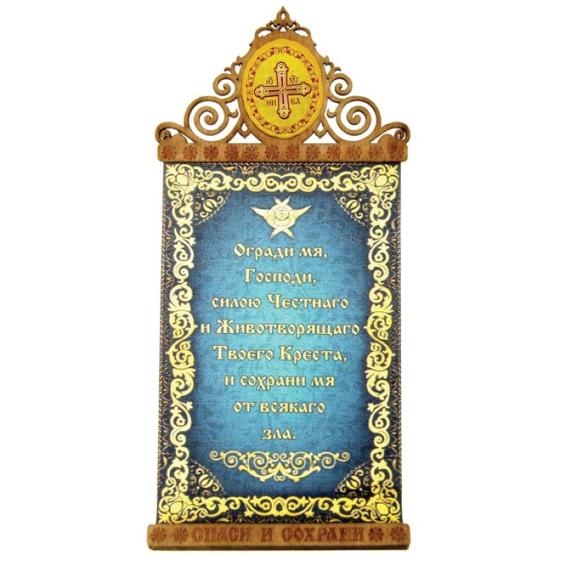 Скрижаль на магните "Кресту Господню" с изображением Креста изготовлено из холста с нанесенным полноцветным изображением и приклеенным к двум деревянным подвесам с ажурным орнаментом. На обратной стороне имеется магнит. На верхнем подвесе вклеена фольгированная икона, которая полностью соответствует канонам Православной Церкви. Панно упаковано на оригинальной подложке. Такое панно-магнит привнесет в Ваш дом согласие и мир и будет прекрасным подарком, оберегающим близких Вам людей.